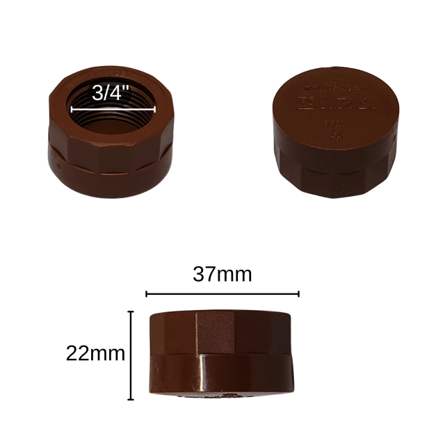 - Un extremo rosca hembra 3/4", otro extremo ciego.